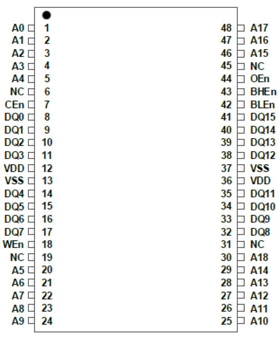 要寫入設備,請將芯片使能(CE)和寫使能(WE)輸入設為低電平。如果字節低使能(BLE)為低,則來自I / O引腳(DQ0至DQ7)的數據被寫入地址引腳(A0至A18)上指定的位置。如果字節高使能(BHE)為低電平,則來自I / O引腳(DQ8至DQ15)的數據將寫入地址引腳(A0至A18)上指定的位置。要從器件讀取,請將芯片使能(CE)和輸出使能(OE)設為低電平,同時將寫入使能(WE)設為高電平。如果字節低使能(BLE)為低,則地址引腳指定的存儲器位置中的數據將出現在DQ0至DQ7上。如果字節高使能(BHE)為低,則來自存儲器的數據出現在DQ8到DQ15上。有關讀取和寫入模式的完整說明,請參見第8頁的真值表。