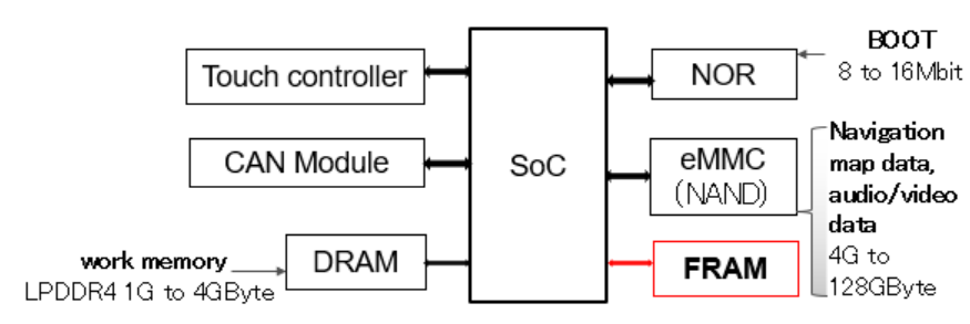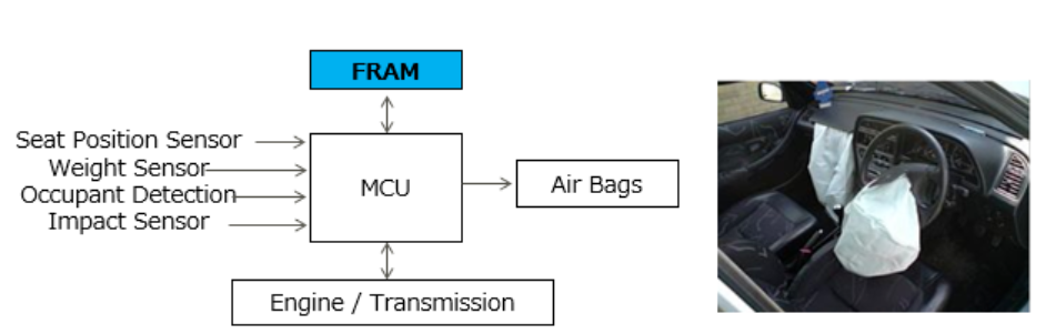 環(huán)境傳感器&攝像,車聯(lián)網(wǎng)通信技術(shù)和人工智能決策平臺是自動駕駛技術(shù)的核心技術(shù)。傳感器,CAN通信,infotainment這些系統(tǒng)需要實時和持續(xù)地存儲當前狀態(tài)信息,并進行實時分析和處理。因此需要提高存儲器的性能和耐久性設計,這些要求使FRAM成為理想的存儲選擇。