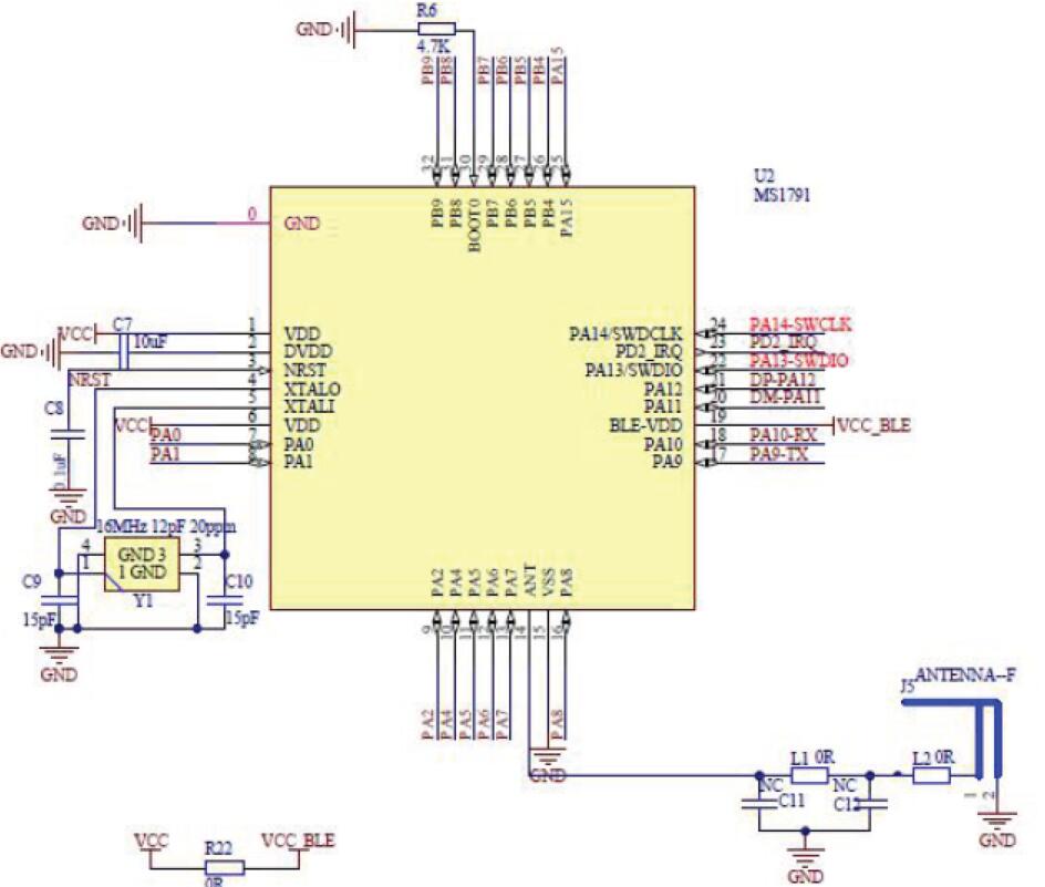 上海巨微MS1791是單模超低功耗藍牙芯片,射頻采用的是2.4GHzISM頻段的頻率,2MHz信道間隔,符合藍牙核心規范4.1。MS1791使用高性能的ARM Cortex-M0為內核的32位微控制器,最高工作頻率可達48MHz,內置高速存儲器,豐富的增強型I/O端口和外設連接到AHB和APB總線。