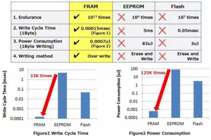 FRAM、EEPROM、FLASH主要參數對比