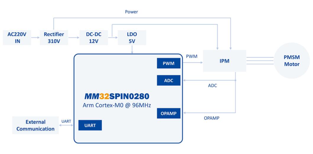 MM32SPIN0280為主控的主變一體洗衣機方案