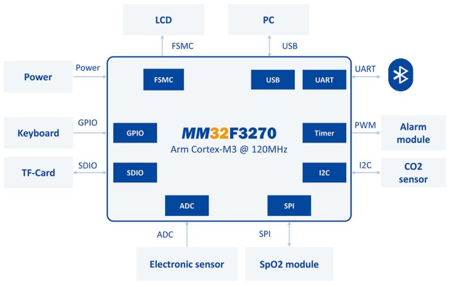 -信號采集:通過電極和傳感器拾取人體生理參數信號,并將光、壓力等其它信號轉化為電信號,通過ADC或者通信口接收采集的數據