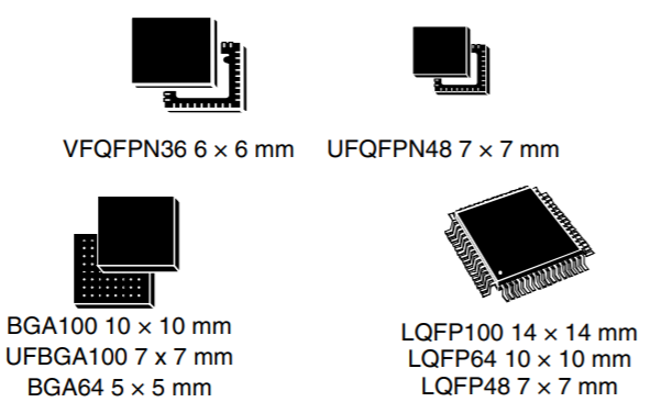 MM32F103C8T6產品提供 LQFP100、LQFP64、LQFP48、LQFP32 和 QFN32 共 5 種封裝形式;根據(jù)不同的封裝形式,器件中的外設配置不盡相同。